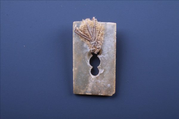 1. 年代:明    尺寸:长1.1厘米、宽0.1厘米、高1.8厘米     质地:玉