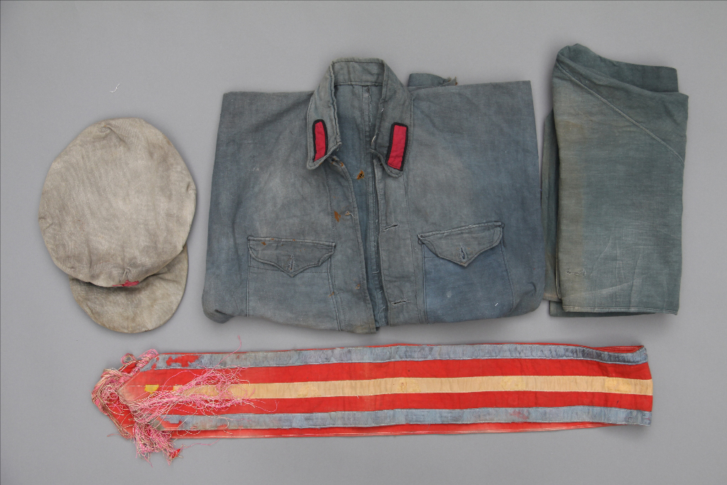 年代:1929年    尺寸:帽围:75厘米,衣长:64厘米,裤长:64厘米,织巾带长:137厘米     质地:布